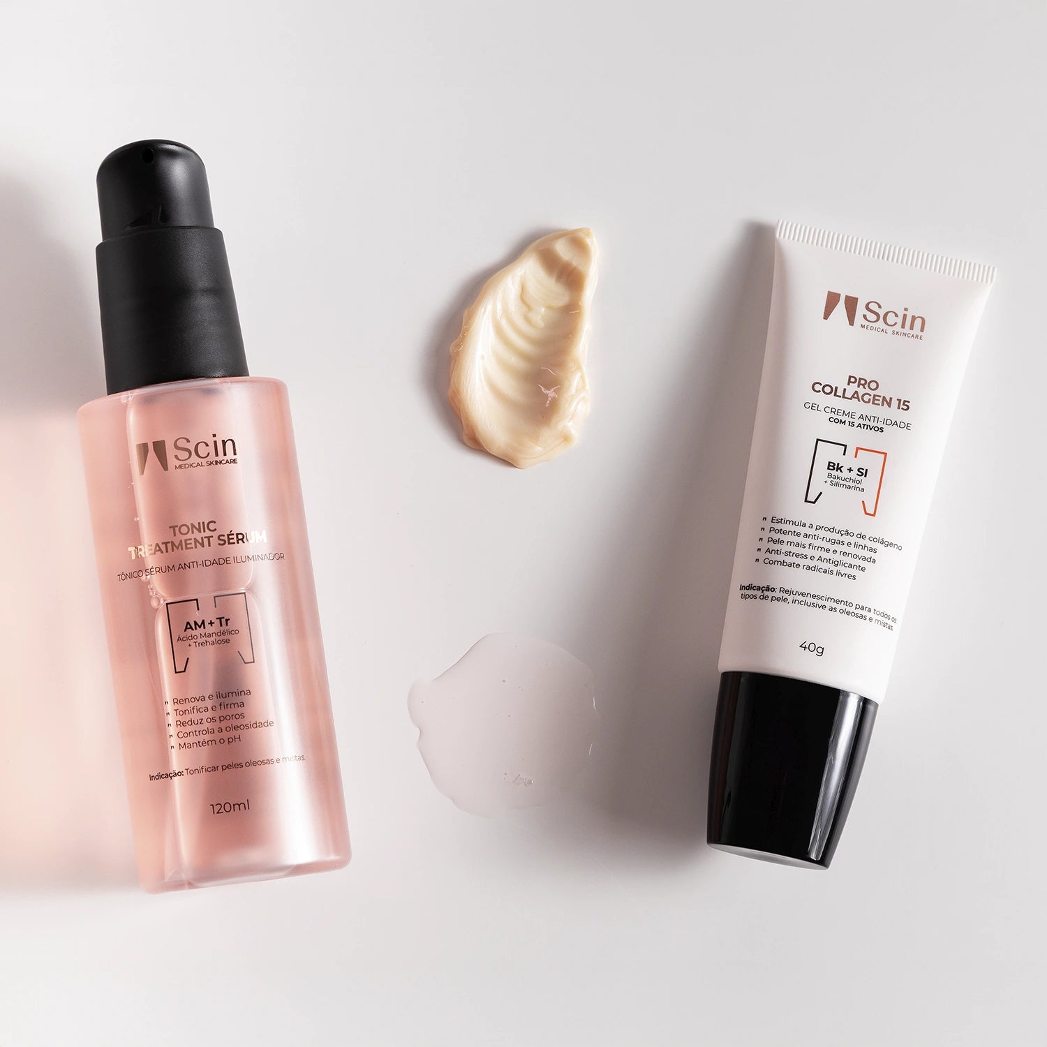 Tônico Sérum Iluminador Anti-idade e Gel Creme Anti-idade com 15 Ativos.